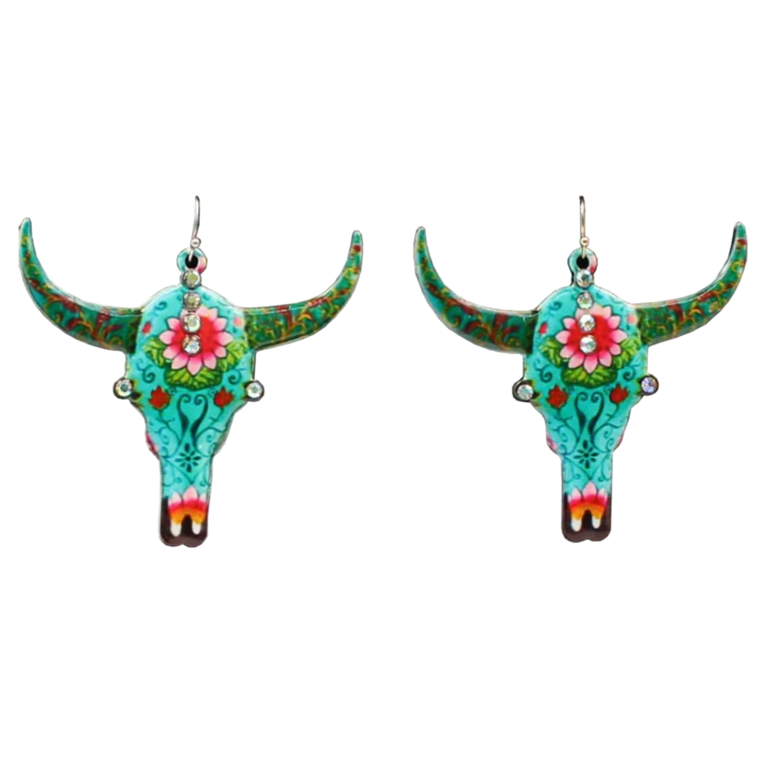 Blazin Roxx® Ladies Cow Skull Floral Multi-Colored Earrings 30949