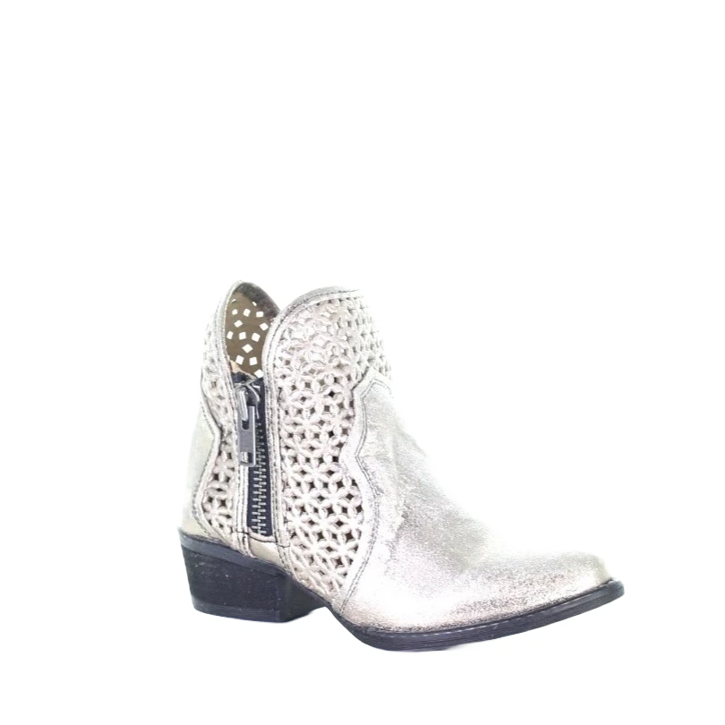 Circle G By Corral Ladies Metallic Silver Cutout Shortie Boots Q5127
