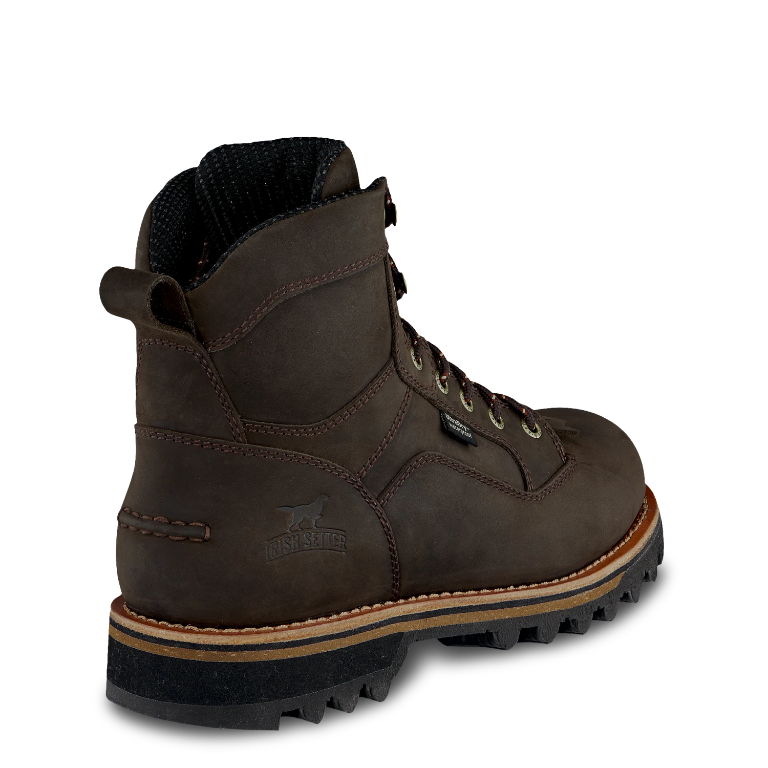 - Brown waterproof full-grain leather.